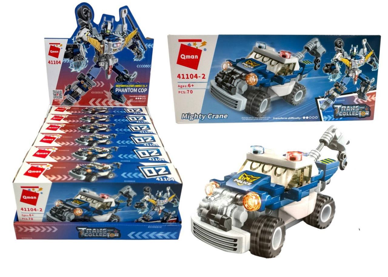 Цікавий конструктор-трансформер «Фантом Поліцейський» поєднує елементи техніки та бойового робота. У наборі дитина може зібрати 2 моделі: потужний патрульний автомобіль або робота-трансформера. Деталі легко з’єднуються та роз’єднуються, розвиваючи моторику, логіку та уважність.