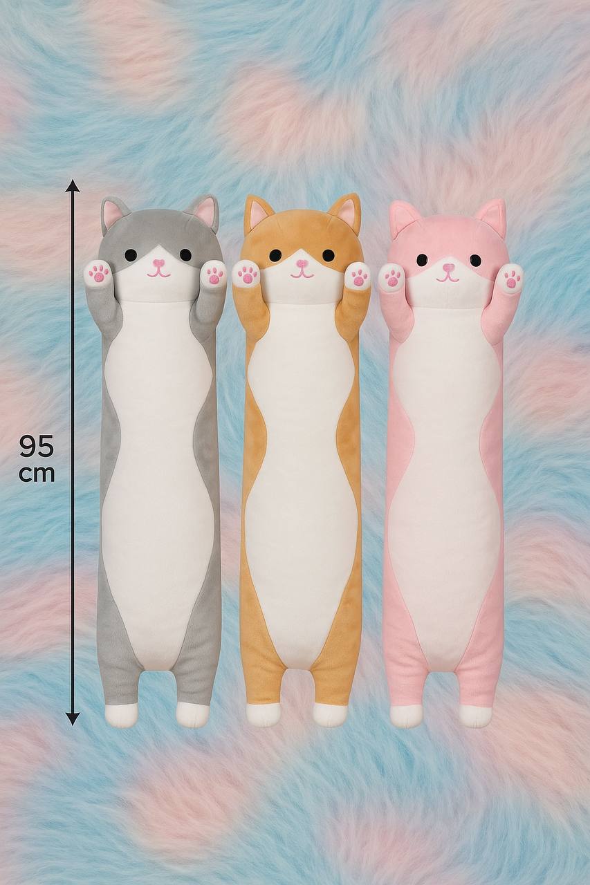 М’які, довгі та неймовірно приємні на дотик котики-обнімашки стануть улюбленою іграшкою для дітей і дорослих. Довжина 95 см — ідеальна, щоб обіймати, спати та використовувати як декоративну подушку.