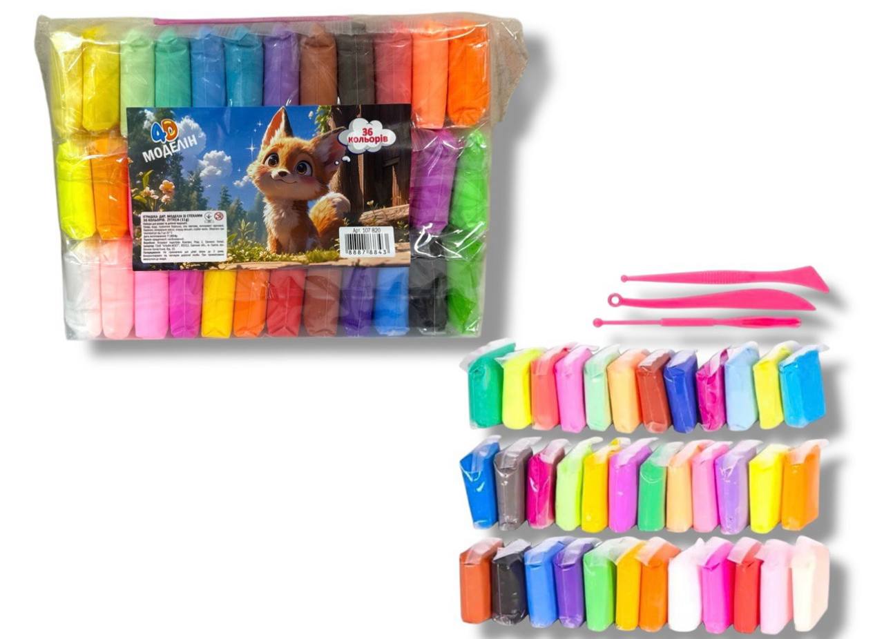 Набір легкого повітряного пластиліну 4D — яскравий матеріал для творчості та моделювання. У комплекті 36 насичених кольорів, які легко змішуються між собою. Пластилін м’який, не липне до рук і твердне на повітрі, що дозволяє створювати фігурки, декор та різноманітні вироби. Розвиває дрібну моторику, фантазію та творче мислення. Підходить для дітей і дорослих.