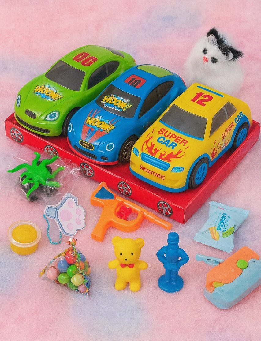 Яскравий комплект, у якому дитину чекають барвисті машинки, маленькі іграшки та смаколики. Ідеально для подарунка!